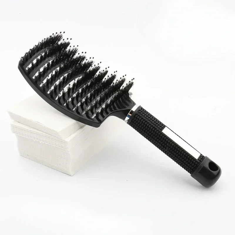 – Essa escova de cabelo tem cabeça grande e formato curvo que pode segurar mais cabelo por conta própria. Com todos os tipos de cabelo, permitindo pontos de contato e ângulos ideais com o couro cabeludo, ao mesmo tempo que promove a estimulação natural do óleo capilar.